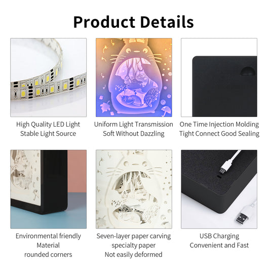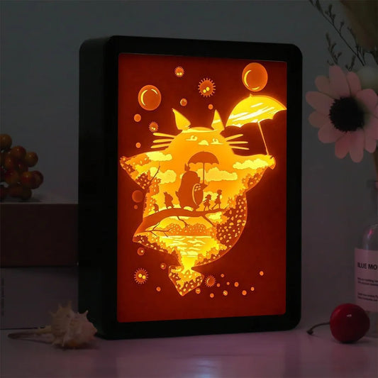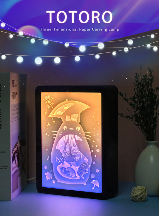 Totoro Anime Light Box Paper Craving Lamp(Black Shadow Box Frame)
