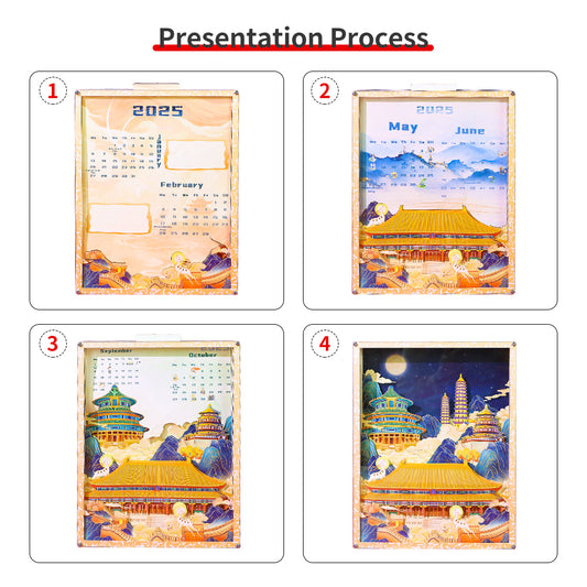 Traditional Building Style Paper Craving Lamp With Calendar Sheets(Acrylic Shadow Box Frame)
