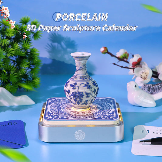 Blue and White Porcelain 3D Paper Sculpture Calendar Memo Pad With Light