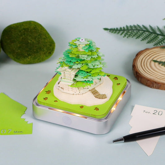 Green Treehouse Model Hand Torn 3D Memo Pad Panoramic 3D Calendar(Silver Base)