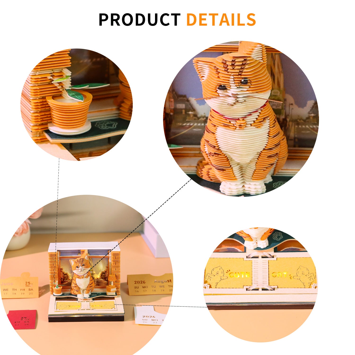 Cute Orange Cat Hand Tear off 3D Calendar Memo Pad With Ligh