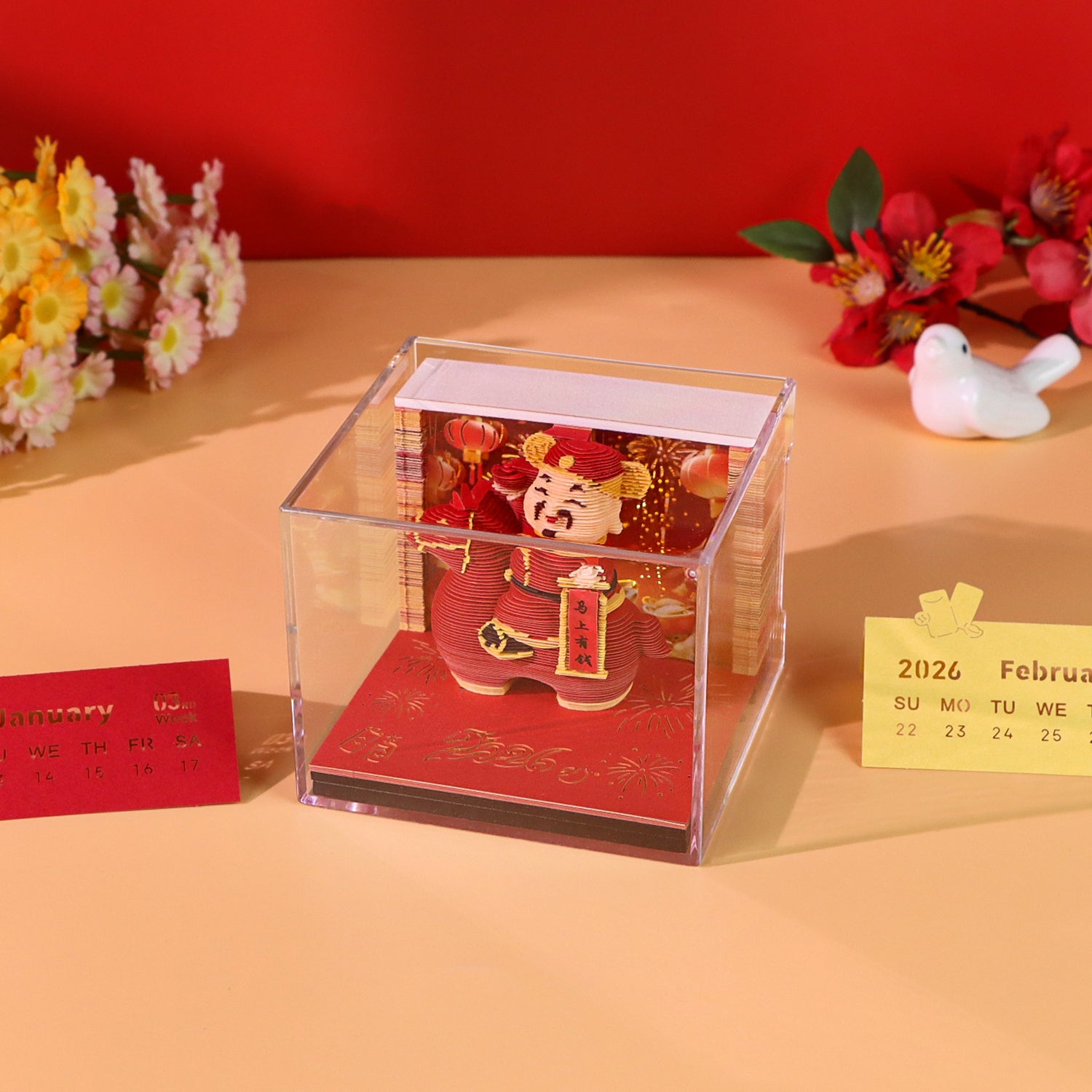 God of Wealth Figure Model Hand Tear off 3D Calendar Memo Pad with Light