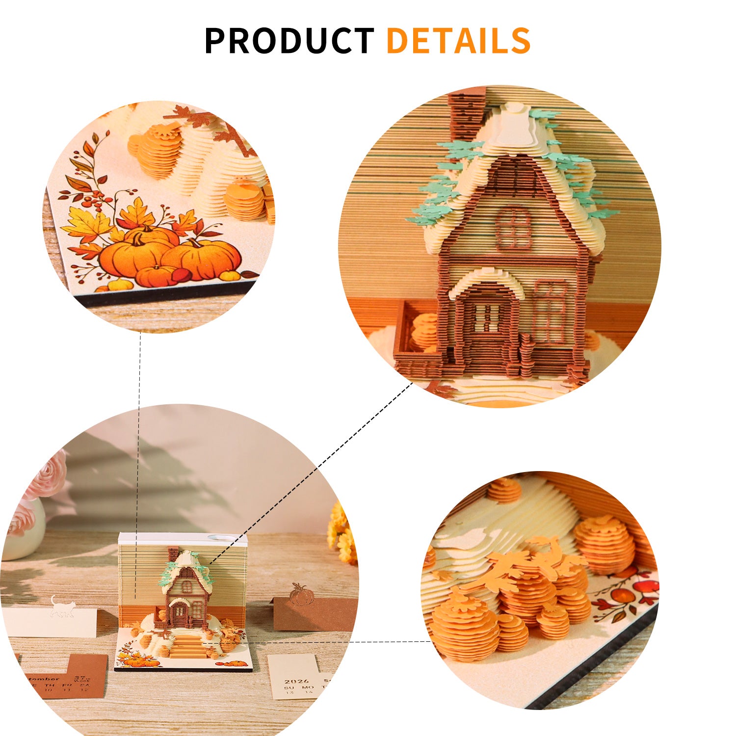 Pumkin House Diorama Hand Tear off 3D Calendar Memo Pad With Light