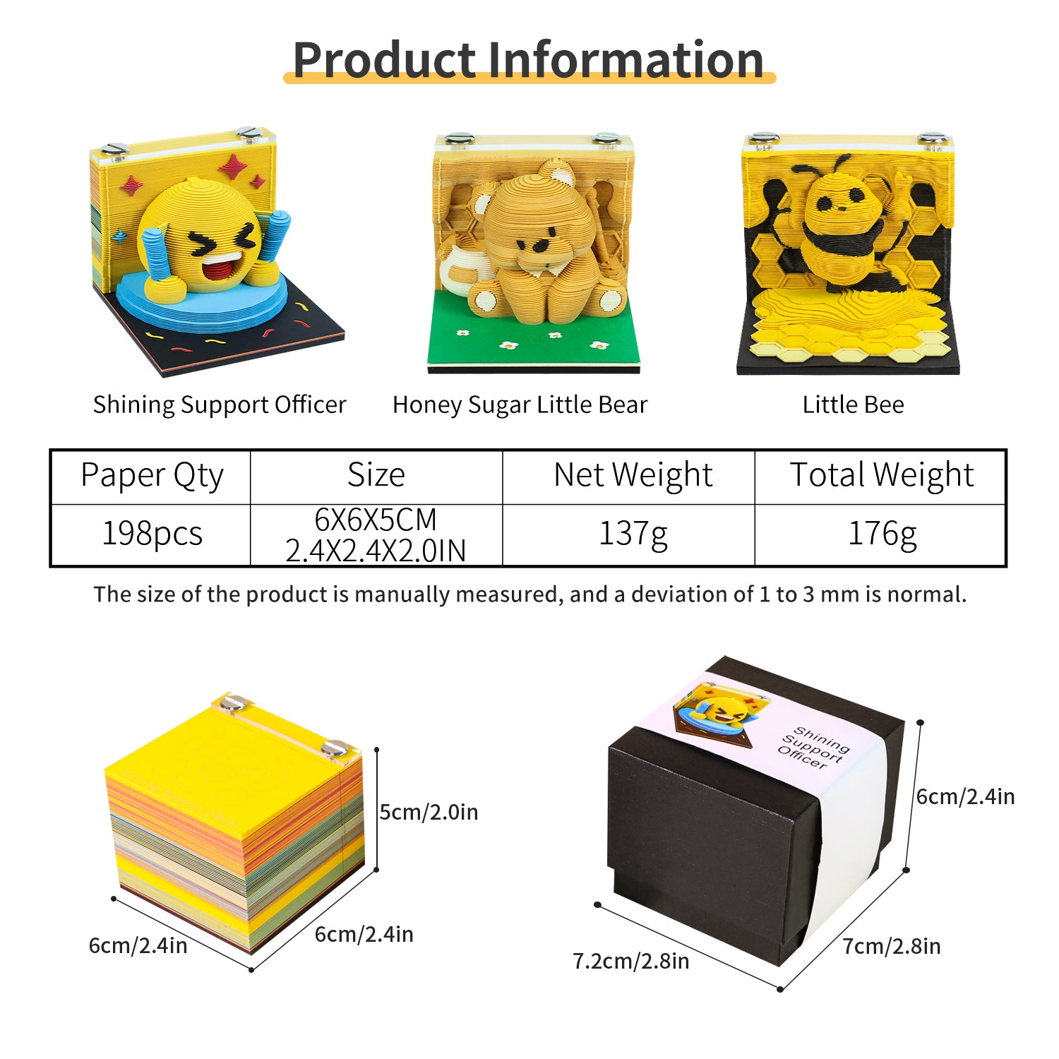 CuteBee Bear Face Icons Emoji 3D Miniature Model Hand Tear Off Memo Pad