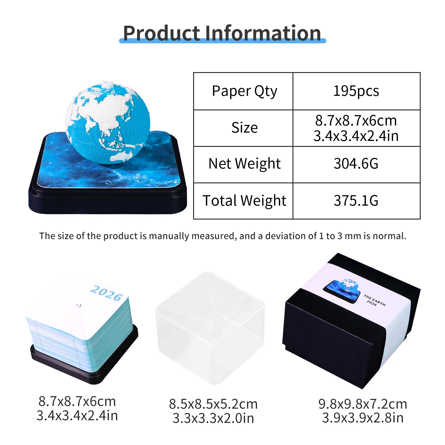 Earth Model Paper Sculpture Miniature Hand Tear off 3D Calendar Memo Pad