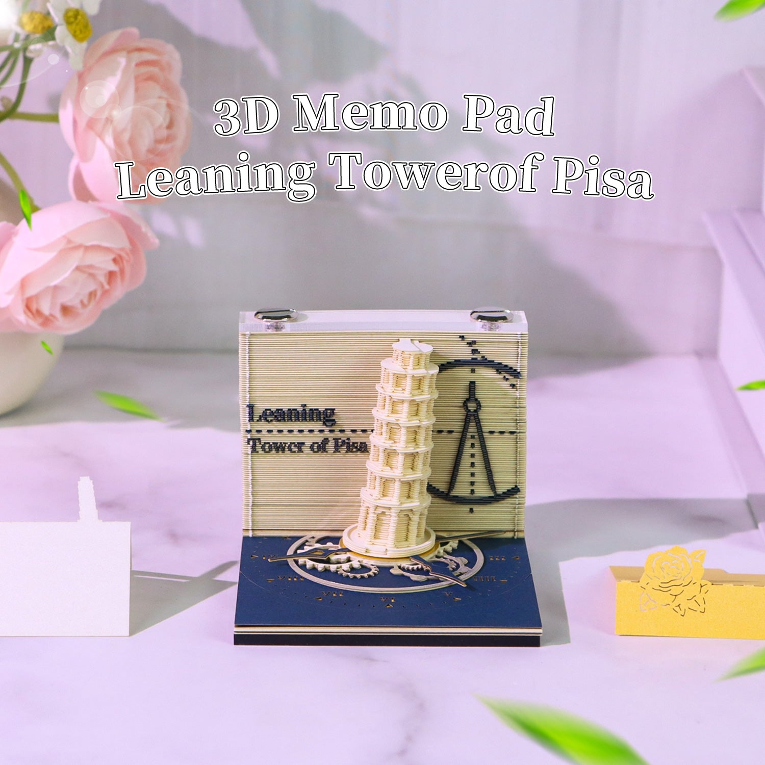 Leaning Tower of Pisa/Angel Wishing Fountain/Retro House 3D Miniature Model Hand Tear Off Memo Pad