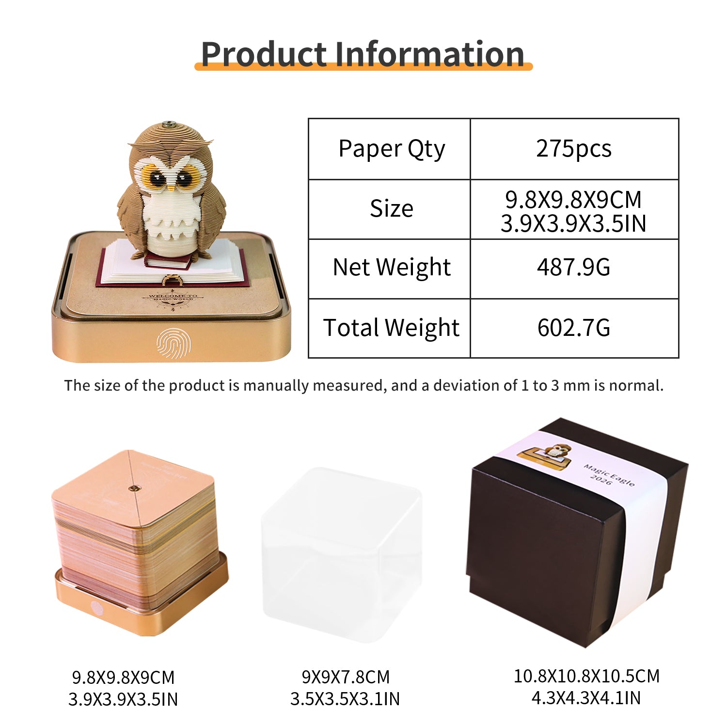 Panoramic Magic Eagle OWL 3D Paper Sculpture Calendar Memo Pad With Light