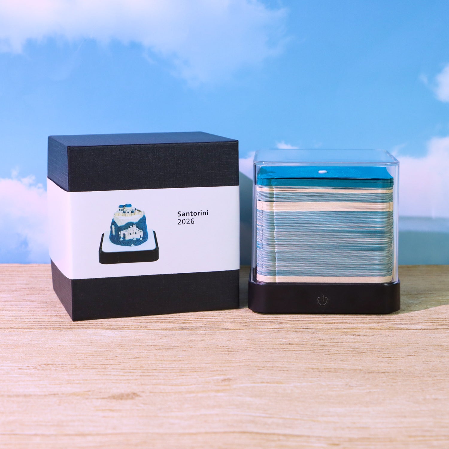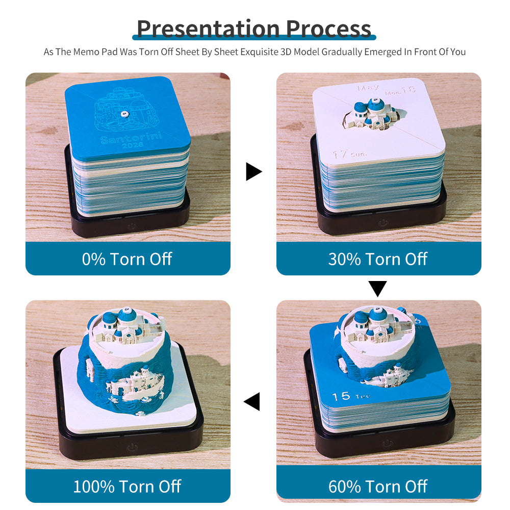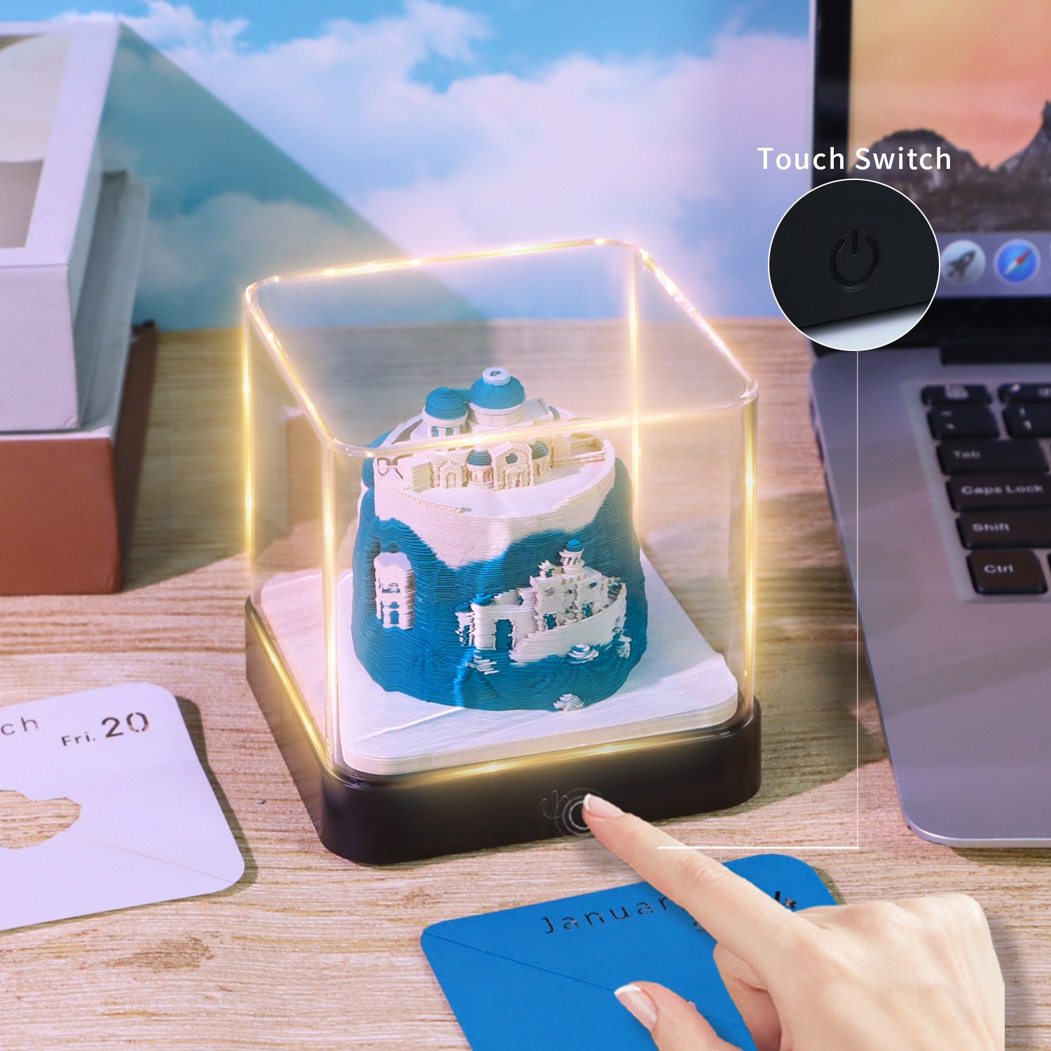 Santorini Aegean Sea 3D Paper Sculpture Calendar Memo Pad With Light