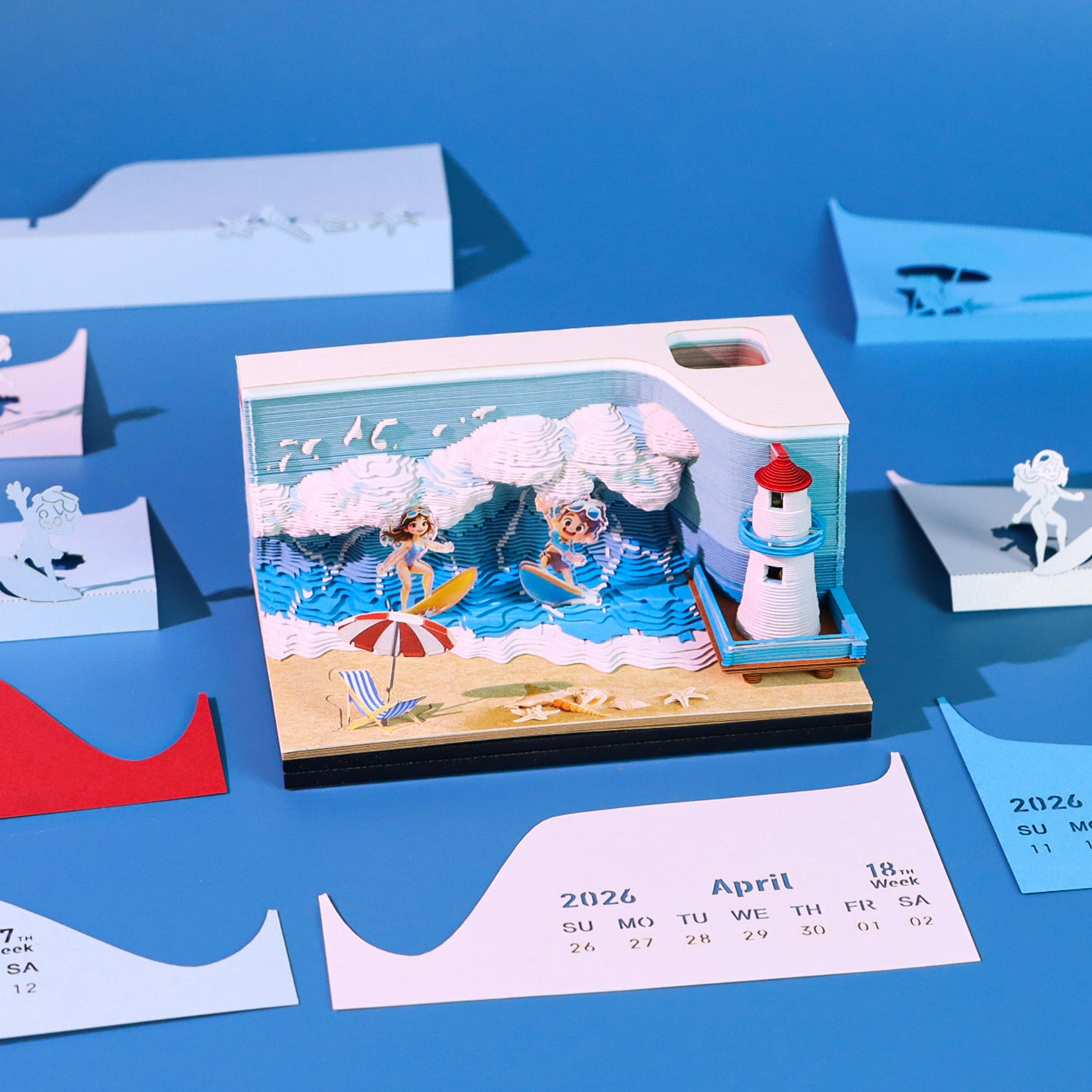 Surfing Great Wave Hand Tear off 3D Calendar Memo Pad With Light