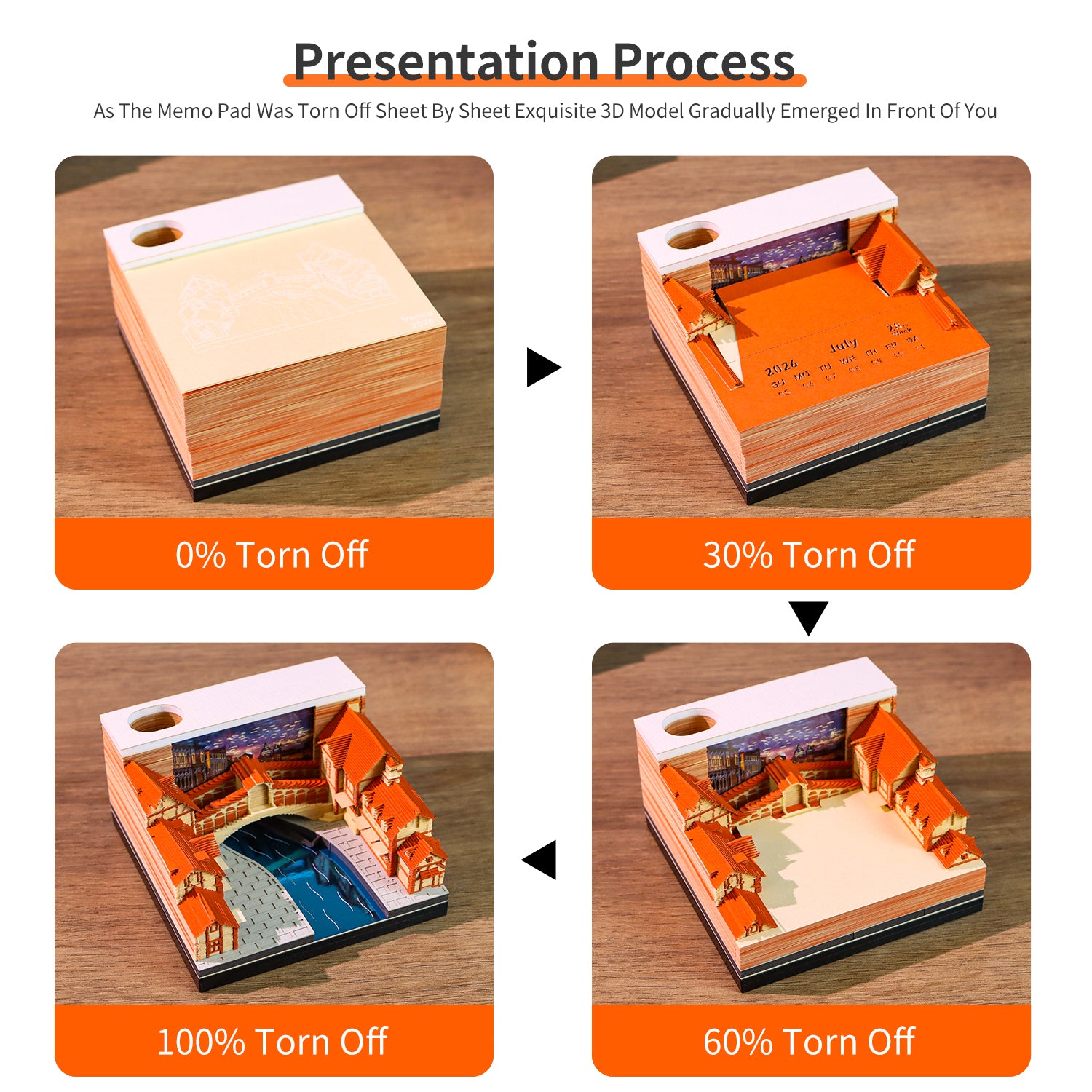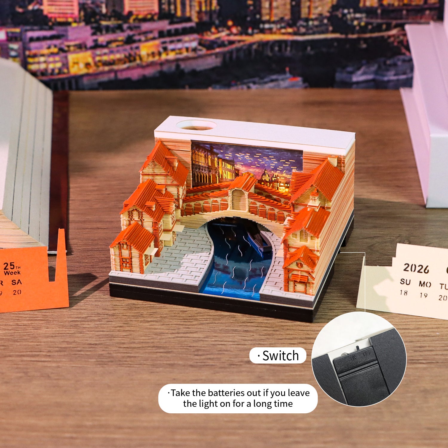 Venice Rialto Bridge Miniature Hand Tear off 3D Calendar Memo Pad With Light